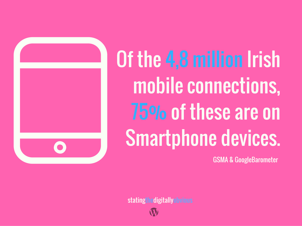 1. Smartphone Penetration – Of the 4,8 million Irish mobile connections, 75% of these connections are on Smartphone devices. Smartphones are the first truly personal computers (it’s yours and fits into your pocket!). The opportunities to engage consumers and give them a great experience with your brand are vast. From mobile app solutions to mobile optimized or responsive web experiences.